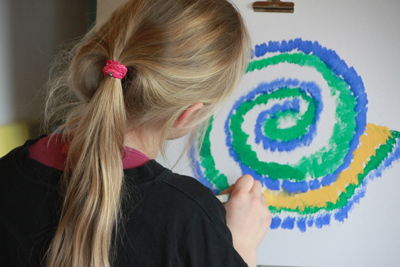 mit Farbe, Papier, Wolle, Ton, Kreide, Steinen, ...